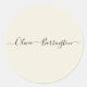 Modern Minimalist Ecru White Script Custom Name Classic Round Sticker