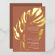 Modern minimalist elegant monstera leaf wedding foil invitation.