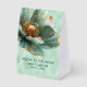 A gorgeous minimalist emerald and gold color WELCOME TO OUR WEDDING table top sign.