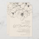 A modern minimalist 60th Birthday party invitation. The design features a floral line art arrangement set on a light beige card with the design repeated on the reverse of the invitation. arrangement of watercolor tulips in shades of peach and cream with mauve accents. Personalise with all of your important details including the guest of honours name, date, time, location and RSVP information.