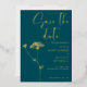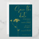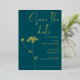 Modern minimalist gold foil design . Simple modern handwritten typography in gold foil, deep teal background and adding to it subtle floral touch - sketch of Queen Anne's Lace. You can personalize the wording, font style, color and size of this invitation card. Mach items available in collection