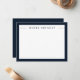 Modern Minimalist Frame Navy Blue and White Flat Note Card. Stylishly personalise with your custom name.