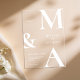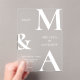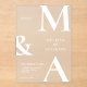 Modern Minimalist Frosted Acrylic Wedding Invitation. Features bold monogram typography and minimal graphic design. Personalise text with all the details of your special day.