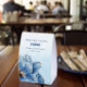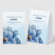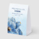 A gorgeous minimalist blue and gold color Poppy adorns this wedding table top tent sign.