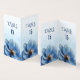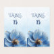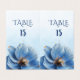 A gorgeous minimalist blue and gold color Poppy adorns this wedding table number card.