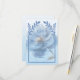 A gorgeous minimalist blue and gold color Poppy adorns the top portion of this wedding response card.