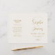 Our customised gold calligraphy wedding ceremony program has a timeless, elegant look with clean lines. It perfectly complements our Modern Minimalist Wedding Invitation Suite/Collection, and you can customise all texts to suit your wedding requirements. Please note that the folded sheet programs arrive flat and require a centre fold. Visit our store on the following link for matching items - https://bit.ly/3UAdkxy