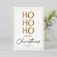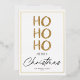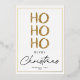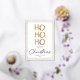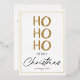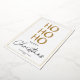 This elegant and modern Christmas card features a bold "HO HO HO" in eye-catching printed gold glitter-style text, framed by a sleek, thin foil border. The message "Merry Christmas" is displayed in a stylish combination of serif and script fonts, offering a sophisticated and festive greeting. The card also includes space to personalise with your family name and the year, making it a thoughtful and customised holiday greeting. With its clean, minimalist design and luxurious gold accents, this card is perfect for those who want to send a chic, timeless message that exudes holiday cheer.