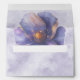 A purple and gold poppy in a lighter opacity color appears on the inside of this envelope as guests open their invitations.