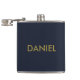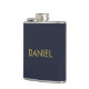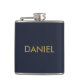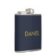 Modern minimalist gold text navy blue hip flask