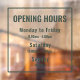 Keep your customers informed with this modern minimalist Opening Hours sign, designed for storefronts, cafés, boutiques, salons, small businesses, and offices. Featuring clean typography, a simple border frame, and a soft blurred background, this editable business hours poster adds a professional touch to your entrance or window display. Customize the days and times to match your schedule. Perfect for shops looking for a stylish, easy-to-read hours sign.