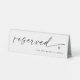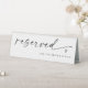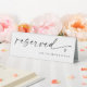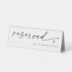 This modern reserved sign features the word “reserved” in elegant handwritten script with a small heart accent. Perfect for wedding reception seating, this self-standing tent card can be personalized with text like “for the bride’s family.” A simple, black and white minimalist design that coordinates beautifully with matching table numbers.