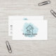 Modern and professional minimalist house cleaning and maid services business card featuring a simple minimal logo of a bucket and mop inside a house on a beautiful blue abstract watercolor background. Ideal for residential cleaning, commercial cleaning and professional services.