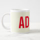 Modern Minimalist Initials Red Monogram Beige Large Coffee Mug