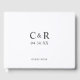 A sleek, minimalist wedding guest book featuring the couple's initials in sophisticated serif typography with the wedding date centred below. The clean white cover and understated design make a timeless keepsake. The spine is also personalised with the couple's full names and date. Customise the couple's initials, names, and wedding date.