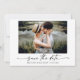 Modern Minimalist yet Elegant Calligraphy Ink Pen Script Couple Photo Wedding Engagement Announcement Save The Date Card with your QR Code wedding website address on back of card