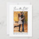 Modern Minimalist yet Elegant Calligraphy Ink Pen Script Couple Photo Wedding Engagement Announcement Save The Date Card with your QR Code wedding website address on back of card