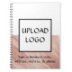 Modern Minimalist Logo Business Promotional Notebook. Modern 2025 style notebook for your business. Upload your logo, type in your business name, address, website, and phone. Featuring a rose gold marble and white background. Choose your favourite colour in the top block if you like!