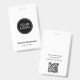This customisable employee name tag features a bold centred logo, clear name and job title, and a functional back with QR code and company details.