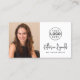 Modern minimalist logo photo business card shown with a signature script type for your name and in your choice of all colours with your QR code and icons for phone, email, social media usernames for FaceBook and Instagram, website and address that you can delete or add your own and move around as desired. CHANGES: Change any text font style, colour, size and placement, change background or icon colours or delete/move the contact icons in EDIT. ASSISTANCE: For help with design modification or personalisation or if you would like coordinating items, contact the designer BEFORE ORDERING via the Zazzle Chat MESSAGE tab or email makeitaboutyoustore@gmail.com.