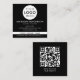 Create a clean and professional look with this customizable black and white business card. The front features space for your business logo, giving your brand a bold first impression. Easily personalize all of your contact information, including your name, job title, website, email, phone number, or social media handle. Also features a QR code on the back for your customers to scan to visit your website.