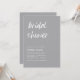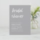 This invitation effortlessly combines modern style with minimalist design, creating an invitation that is both chic and sophisticated. The standout feature is the playful white handwriting font that spells out "Bridal Shower," infusing the invitation with a sense of fun and modernity. The remaining text is presented in clean white block fonts, ensuring clarity and a timeless appeal that perfectly complements the invitation's sleek and minimalistic aesthetic.