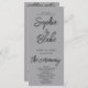 The front of the program showcases a thoughtful combination of block lettering, script lettering, and strategic spacing, ensuring that each word stands out distinctly. This harmonious design approach adds a touch of contemporary flair to the matte silver background, making it an ideal choice for couples who appreciate the chic allure of minimalist details.