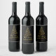 Modern Minimalist Merry Christmas Gold Black Wine Label
