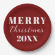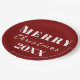 Modern Minimalist Merry Christmas Red Holiday Paper Plate