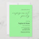 Introducing an invitation that effortlessly marries modern aesthetics with the promise of love's celebration – our Modern Minimalist Script Black and Mint Green Engagement Party Invitation. Set against a backdrop of refreshing mint green, this invitation perfectly encapsulates the spirit of contemporary design while reflecting the excitement of your upcoming event.