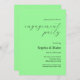 Against the soothing mint green canvas, the text is thoughtfully justified to the right, creating an engaging visual arrangement that guides the eye. The words "engagement party" are meticulously etched in a Calligraphy Script font, seamlessly merging modern sophistication with a touch of delicate charm. This font choice serves as an elegant prelude to the festivities that lie ahead.