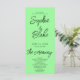 The front of the program showcases a thoughtful combination of block lettering, script lettering, and strategic spacing, ensuring that each word stands out distinctly. This harmonious design approach adds a touch of contemporary flair to the mint green background, making it an ideal choice for couples who appreciate the calming allure of minimalist details.