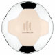 An elegant, modern, minimalist soccer ball in neutral tones with personalised monogram (light brown) and name (dark brown serif font).