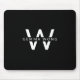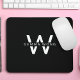 A sleek and modern monogram mouse pad in black and white.