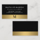 Modern Minimalist Monogram on Black Gold Trim Business Card