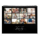 Cherish your family's special memories and display your beautiful family photos with our modern minimalist multi-photo calendar. Simple and modern design with a large simple single photo design layout for each month. A bold black background frame behind each photo creates a modern stylish design with an emphasis on your monthly call-out photo. Each month is displayed below each photo in simple clean typography. The cover displays a large single photo with your family name and calendar year neatly displayed. "Family" is designed in modern calligraphy. The reverse side features a photo grid layout featuring each of the 12 photo months. A memorable and special gift for family or display in your home.