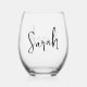 Modern Minimalist Name Script Monogram Stemless Wine Glass