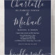 Modern Minimalist Navy Blue Script Wedding All In One Invitation