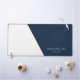Minimalist Navy Blue and White desk mat with a modern and simple design. With customisable lettering, you can add your own information. Great for adding a simple touch to your home office.