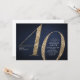 Modern minimalist 40th birthday party invitation features stylish faux gold glitter number 40 and your party details in classic serif font on navy blue background, simple and elegant, great surprise adult milestone birthday invitation.