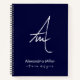 Modern professional notebook features a brushed script monogram in navy blue and white. Monogram initials are layered to create a unique design for you. An elegant notebook for home or office, a simple modern monogrammed notebook for your workspace. Ideal for consultants, attorneys, real estate agents, corporate or executive coaches, or any other business professional, or a thoughtful office gift.