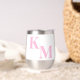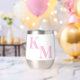 This wine tumbler glass has just your two letter monogram in big pale pink letters. There will be no mistaking who this handsome glass belongs to! Modern, sleek, and trendy.