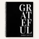 Modern Minimalist Script Personalised Gratitude Notebook. Features minimal black background and elegant grateful typography design. Personalise with your name.