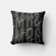 Modern minimalist styled decorative pillow. Appropriate to give as gift for wedding or anniversary. Please personalise name. Black and white and grey colouring. Front and back alternate between white and black and grey colouring.