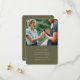 Announce your big day with this minimalist modern photo save the date card in olive moss. Featuring a full photo design with a simple and elegant text layout, this card is perfect for couples who love a clean, contemporary aesthetic. Personalize it with your wedding details and a favorite engagement photo to create a stylish keepsake for friends and family. Ideal for rustic, outdoor, or modern wedding themes.