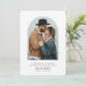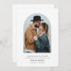 Simple, elegant, minimalist engagement photo announcement card. Design features single photo and details in trendy capital lettering.