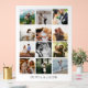 Create your own personalised wedding sign showcasing some of your favourite moments together. This acrylic sign features a modern 9 photo square collage grid alongside custom names, wedding date, location and other text in elegant minimalist typography.