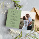 Trendy elegant budget wedding save the date announcement photo budget card (NO ENVELOPES INCLUDED) with modern typography script and your custom image over a sage green simple background. +++++++++++ Easy to personalise with your engagement picture and details! ++++++++++ You have the possibility to change the colours of the script to match your wedding colour palette. +++++++++++++