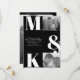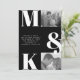 Modern minimalist wedding design is all about simplicity and elegance. It emphasises clean lines, neutral palettes, and a focus on the essentials. This design in trendy black colour uses minimalist style typography with customisable couple photos and bold monograms. Whether you're planning an intimate ceremony or a large reception, modern minimalist design is a perfect choice for couples who want to create a timeless and sophisticated atmosphere for their wedding celebration.