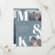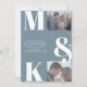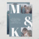 Modern minimalist wedding design is all about simplicity and elegance. It emphasises clean lines, neutral palettes, and a focus on the essentials. This design in trendy dusty blue colour uses minimalist style typography with customisable couple photos and bold monograms. Whether you're planning an intimate ceremony or a large reception, modern minimalist design is a perfect choice for couples who want to create a timeless and sophisticated atmosphere for their wedding celebration.